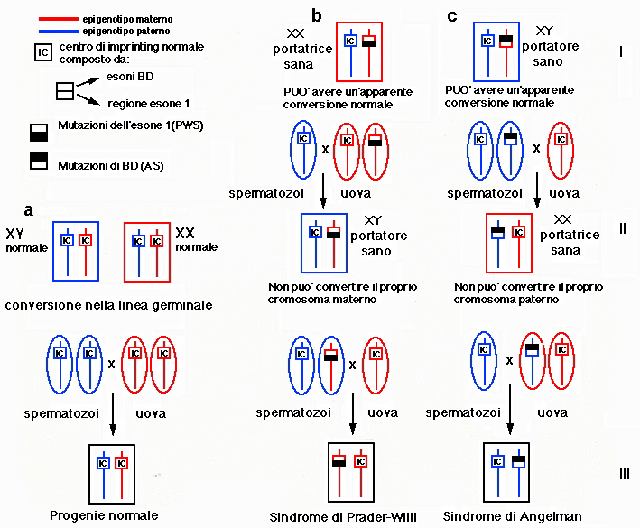 di imprinting IC nelle linee germinali normali (a), nel caso di